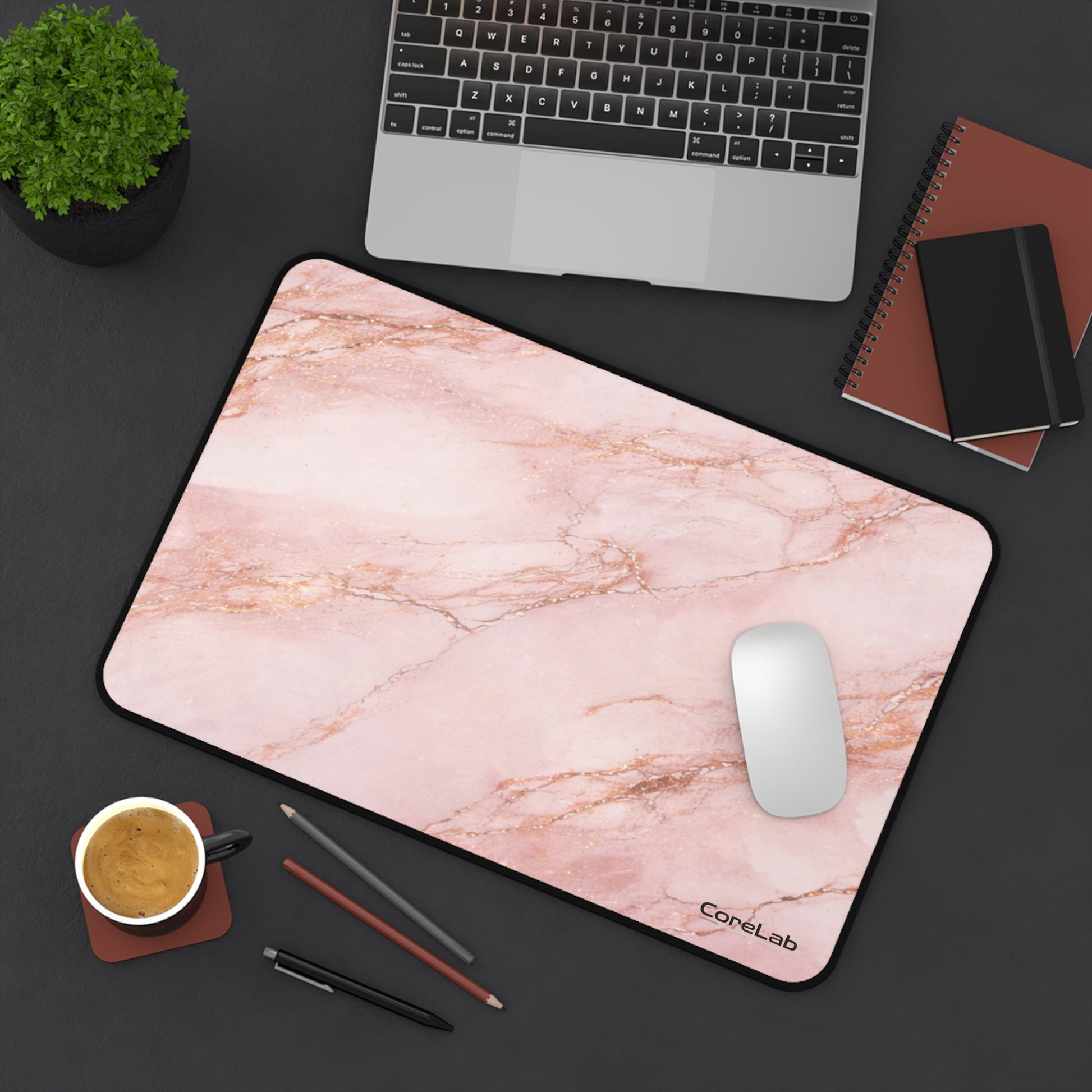 Soft pink marble swirls across a smooth, supportive desk mat that brings calm and color to your workspace. The gentle veins and blush tones feel like a quiet moment between tasks — a breath on busy days, a steady surface for hands and tools. Spread it across your desk for writing, sketching, or anchoring your keyboard and mouse; it keeps everything steady without stealing attention. The stitched edges add a subtle, tailored finish that stands up to daily use, and the dense neoprene base hugs the desk so nothing slips when the ideas start flowing. This mat turns ordinary work into a small, deliberate ritual — a little corner of beauty that invites focus and makes routine feel intentional.